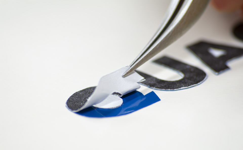 切り終わったらデザインとして残さない部分を剥がしていきます。カットが甘くて切れていない部分は、無理に引っ張らずにもう一度切り直しましょう。特に角で起こりやすいです。面倒臭がって切り直さないと千切れたりすることがありますので注意してください。